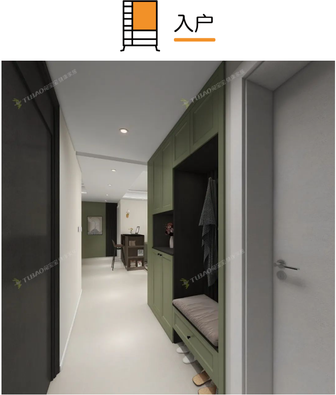 一踏入家門,首先映入眼簾的是玄關(guān)處懸空鞋柜。這款設(shè)計(jì)不僅實(shí)用,而且兼具美觀。
