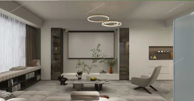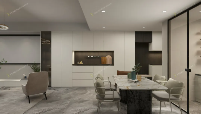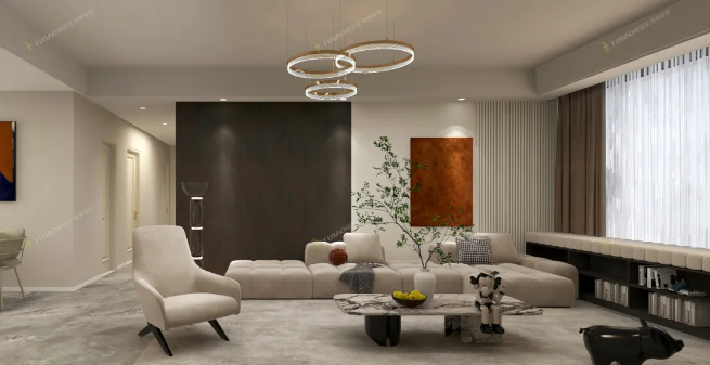 小巧的大理石紋茶幾與沙發(fā)完美呼應(yīng),