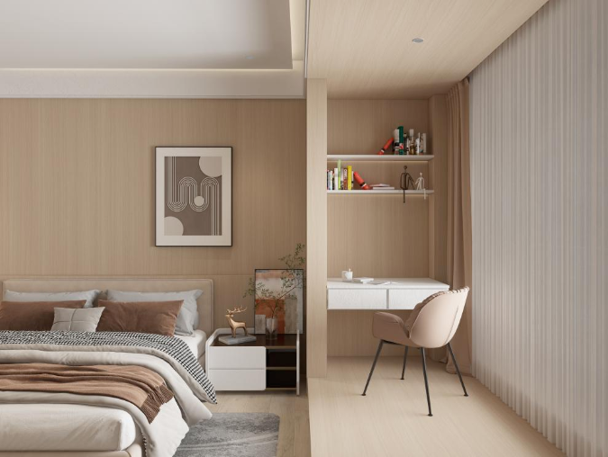 如夢(mèng)令橡木直紋用來(lái)打造臥室背景墻,