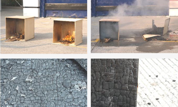 左:難燃板 右:非難燃板