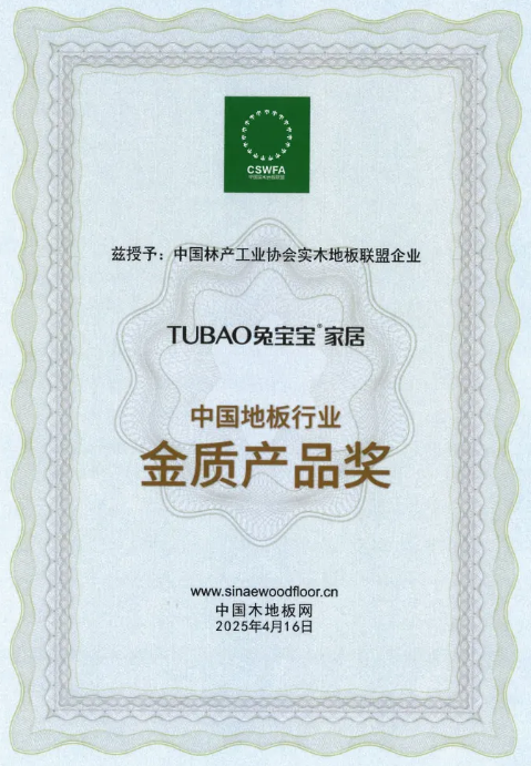 “金質(zhì)產(chǎn)品獎”是中國地板行業(yè)極具公信力的獎項之一,由行業(yè)協(xié)會聯(lián)合專業(yè)機構從環(huán)保性能、工藝技術、耐用性等多維度嚴格評選。兔寶寶地板憑借其嚴苛的選材標準、國際先進的生產(chǎn)工藝以及全程環(huán)保管控體系脫穎而出,成為實木地板領域的標桿品牌。此次獲獎進一步鞏固了兔寶寶在高端地板市場的競爭優(yōu)勢,也為消費者提供了更權威的選購參考。