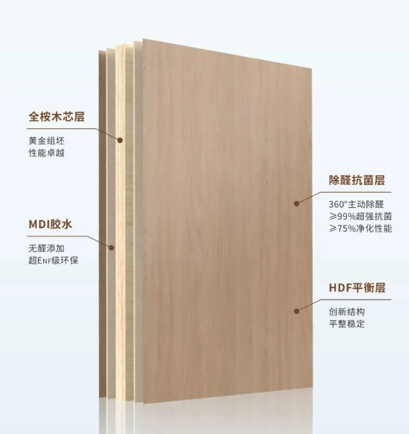 我們以全桉基材(更均衡)+MDI膠(更環(huán)保)+疊層結(jié)構(gòu)(更穩(wěn)定)+除醛抗菌(更健康),重新定義了基材的行業(yè)標(biāo)準(zhǔn)。