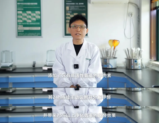 甲殼素除醛:含有高活性氨基的甲殼素與甲醛發(fā)生不可逆反應(yīng),24小時(shí)持續(xù)凈化,效率達(dá)75%以上;