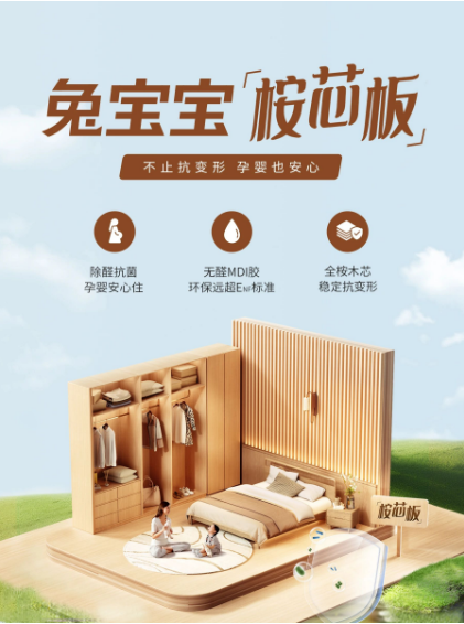 當(dāng)前定制家居賽道陷入“內(nèi)卷”,但內(nèi)卷的本質(zhì)是產(chǎn)品同質(zhì)化。當(dāng)同行還在挖掘多層板潛力時(shí),兔寶寶已經(jīng)站在了更高的點(diǎn)位,開(kāi)發(fā)了革新性基材——「桉芯板」,一舉打破傳統(tǒng)板材性能與環(huán)保的界限,“不止抗變形,孕嬰也安心”,引領(lǐng)行業(yè)滿足消費(fèi)升級(jí)的更高要求。