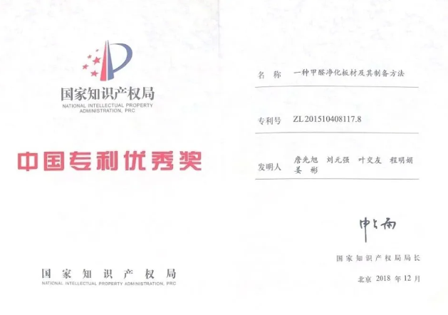 除醛抗菌技術(shù)已形成涵蓋10余項(xiàng)國(guó)家專(zhuān)利的專(zhuān)利池,更有2項(xiàng)發(fā)明專(zhuān)利獲中國(guó)專(zhuān)利優(yōu)秀獎(jiǎng),已然是目前業(yè)內(nèi)應(yīng)用效果最佳、范圍最廣的獨(dú)有專(zhuān)利技術(shù)。