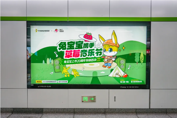 在音樂(lè)節(jié)舉辦期間,兔寶寶的地鐵廣告亮相杭州。明亮的色調(diào)、充滿活力的視覺(jué)設(shè)計(jì),將“打造綠色家,釋放 + 活力”的主題完美呈現(xiàn),進(jìn)一步擴(kuò)大了品牌的影響力。線上品牌熱度也持續(xù)攀升。樂(lè)迷們?cè)谏缃幻襟w上分享現(xiàn)場(chǎng)照片、視頻和自己的感受,#兔寶寶攜手杭州草莓音樂(lè)節(jié)#話題迅速登上熱搜,引發(fā)了更多人對(duì)兔寶寶品牌的關(guān)注。從線上預(yù)熱到線下狂歡,兔寶寶以全鏈路互動(dòng)營(yíng)銷深度綁定年輕圈層,為音樂(lè)節(jié)注入獨(dú)特的品牌基因,實(shí)現(xiàn)了品牌價(jià)值的全面躍升。