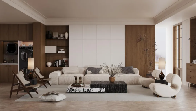 ??統(tǒng)一色彩,空間和諧:統(tǒng)一的色彩搭配,避免了傳統(tǒng)裝修中色彩雜亂的問題,使整個(gè)空間呈現(xiàn)出和諧一致的美感。