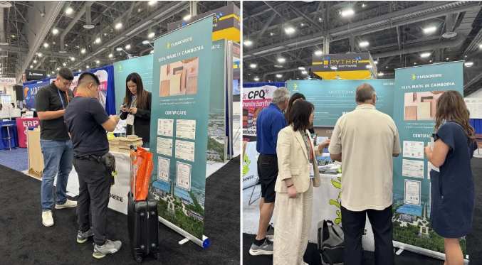 此次兔寶寶的展位設(shè)計(jì)頗具巧思。一側(cè)是巨幅醒目的品牌海報(bào),以鮮明的視覺(jué)沖擊傳遞品牌理念;另一側(cè)陳列著北美黑胡桃、直紋白橡、櫻桃等高端出口產(chǎn)品,每一件都宛如藝術(shù)品,成功吸引眾多訪客駐足觀賞、深入了解。多位意向客戶與兔寶寶團(tuán)隊(duì)展開深度交流,對(duì)產(chǎn)品品質(zhì)給予高度認(rèn)可,還明確表達(dá)依托兔寶寶柬埔寨基地進(jìn)行穩(wěn)定采購(gòu)的合作意向,為后續(xù)北美及全球市場(chǎng)的深化拓展奠定堅(jiān)實(shí)基礎(chǔ)。