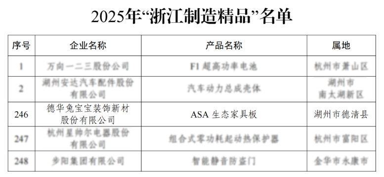 近日,浙江省經濟和信息化廳公布了2025年“浙江制造精品”名單,兔寶寶“ASA生態(tài)家具板”憑借國際先進的技術、可靠的產品質量、卓越環(huán)保的安全性能脫穎而出,成功上榜。