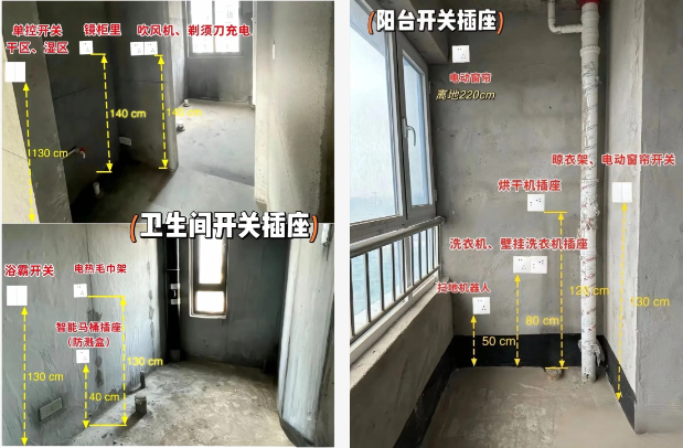 ?玄關(guān)(監(jiān)控)、馬桶旁(智能馬桶)、窗簾盒(電動窗簾)預(yù)留電源