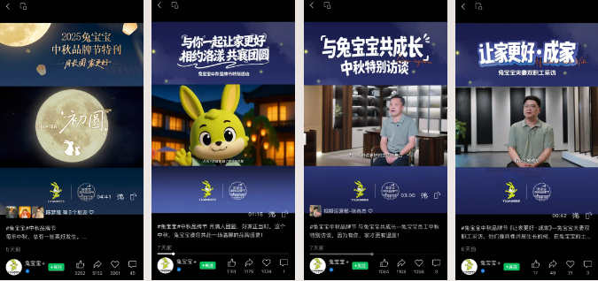 兔寶寶借中秋品牌節(jié)重塑用戶關系,實現(xiàn)從單向傳播到雙向共建的轉(zhuǎn)變。首屆”中秋尋兔”活動以趣味互動喚醒大眾對傳統(tǒng)節(jié)俗的熱情,建立起超越交易的情感紐帶,不斷強化“家”的價值內(nèi)核。中秋品牌節(jié)系列情感短片,聚焦孩子成長、婚房布置、陪伴父母等真實場景,引發(fā)用戶情感共鳴;定制化中秋互動巧妙融合文化元素與品牌符號,深化消費者對“兔寶寶”的認知;晚會中少數(shù)民族員工與遠方親人的真情告白,更觸動無數(shù)人心。以品牌節(jié)為載體,兔寶寶實現(xiàn)了從“情感觸達”到“心智占領”的跨越,構建起與用戶共創(chuàng)共生的長期關系。