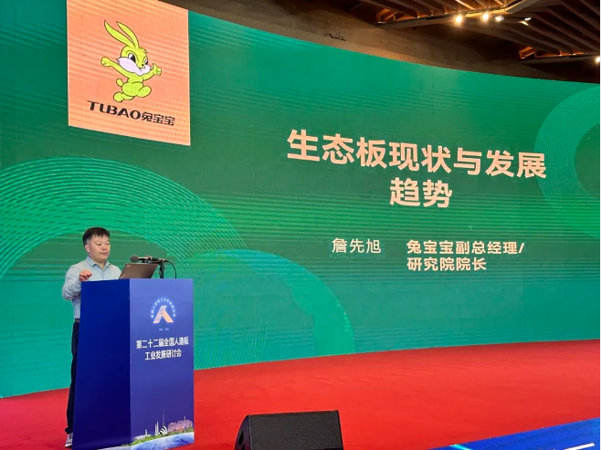 10月17日,第二十二屆全國人造板工業(yè)發(fā)展研討會在河北省廊坊市文安縣成功召開。本屆研討會由中國林業(yè)機(jī)械協(xié)會、中國林產(chǎn)工業(yè)協(xié)會聯(lián)合主辦,德華兔寶寶裝飾新材股份有限公司作為重要承辦單位之一。會議緊扣產(chǎn)業(yè)脈絡(luò),聚焦前沿焦點(diǎn),匯聚各方智慧,深入探討人造板工業(yè)發(fā)展的新模式、新路徑、新技術(shù),為推動人造板產(chǎn)業(yè)高質(zhì)量發(fā)展進(jìn)行系統(tǒng)交流研討。在這場行業(yè)盛會上,德華兔寶寶副總經(jīng)理、研究院院長詹先旭應(yīng)邀出席并作專題報告《生態(tài)板現(xiàn)狀與發(fā)展趨勢》。