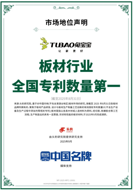 在創(chuàng)新驅(qū)動(dòng)發(fā)展的時(shí)代浪潮中,知識(shí)產(chǎn)權(quán)已成為衡量企業(yè)核心競爭力的關(guān)鍵標(biāo)尺。近日,兔寶寶榮獲“板材行業(yè)全國專利數(shù)量第一”市場地位聲明,這充分彰顯了公司雄厚的科技底蘊(yùn)與領(lǐng)先的創(chuàng)新活力。