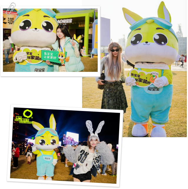 這一次,兔寶寶不只是音樂節(jié)的參與者,更是沉浸式體驗(yàn)的創(chuàng)造者。通過極具設(shè)計(jì)感的現(xiàn)場(chǎng)布置和一系列趣味盎然的互動(dòng)環(huán)節(jié),我們把綠色家居理念深度融入到音樂場(chǎng)景之中,為所有到場(chǎng)樂迷營造了一場(chǎng)可感知、可觸摸、可參與的綠色家居盛宴。在強(qiáng)烈而躍動(dòng)的音樂氛圍包裹下,兔寶寶也用更年輕、更時(shí)髦的方式,悄悄傳遞著環(huán)保、健康、高品質(zhì)的家居生活主張,讓年輕一代在盡情享受音樂魅力的同時(shí),也能直觀感受到綠色生活帶來的舒適與美好。