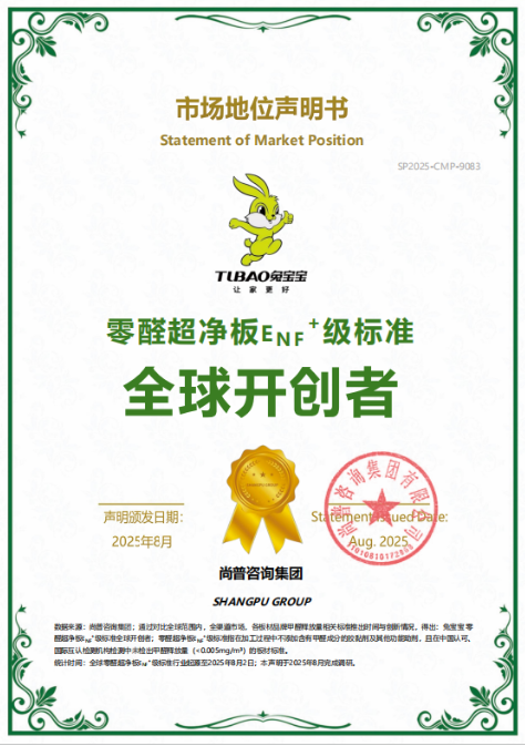 兔寶寶在環(huán)保等級升級的道路上一直走在行業(yè)前沿。從E0級到ENF級,再到ENF+級,每一次升級都是對環(huán)保技術(shù)的突破與創(chuàng)新。2024年,兔寶寶重磅推出零醛超凈板,創(chuàng)新開發(fā)了基材有機(jī)硅改性復(fù)合樹脂表面硬化處理、裝飾紙閃蒸薄涂和EB固化技術(shù),采用連續(xù)平壓輥貼工藝制備零醛超凈板,原料及生產(chǎn)工藝全程無甲醛添加,將甲醛釋放限量值嚴(yán)控在0.008mg/m³以內(nèi),僅為國標(biāo)ENF級限值的三分之一,真正實現(xiàn)了零醛添加。這一突破性成果不僅讓兔寶寶贏得了“ENF+級標(biāo)準(zhǔn)全球開創(chuàng)者”的市場認(rèn)可,更推動了整個家居建材行業(yè)環(huán)保標(biāo)準(zhǔn)的飛躍。