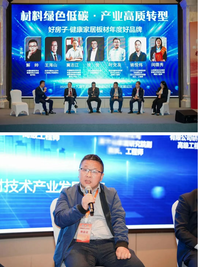 在大會核心環(huán)節(jié)“好房子?健康家居板材年度好品牌”專家訪談中,兔寶寶研發(fā)中心負(fù)責(zé)人葉交友代表企業(yè)發(fā)聲,會議圍繞“綠色低碳與高質(zhì)轉(zhuǎn)型”主題,系統(tǒng)分享了企業(yè)的實(shí)踐路徑與行業(yè)洞察。