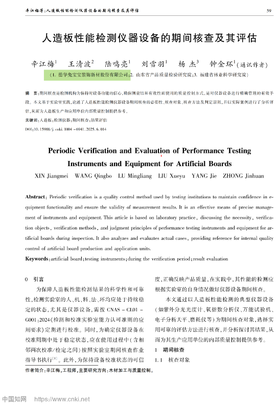 人造板性能檢測(cè)儀器設(shè)備的期間核查及其評(píng)估》(發(fā)表于《計(jì)量與測(cè)試技術(shù)》2025年 第6期)▼▼▼