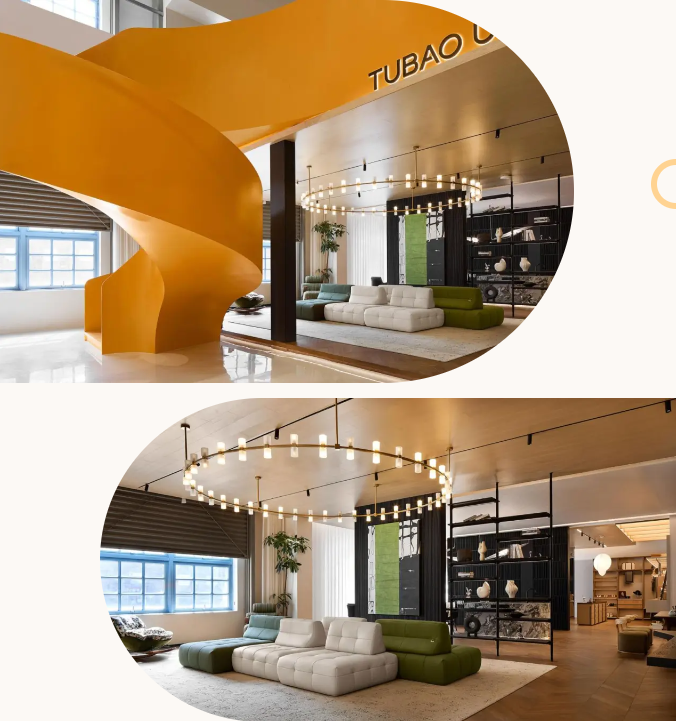 杭州兔寶寶整家定制武林之星一號(hào)店的設(shè)計(jì),以“老廠新生·科技融合”的核心主題。選址于擁有75年歷史的杭氧老廠區(qū),以工業(yè)遺存活化利用為切入點(diǎn),突破傳統(tǒng)家居展廳的功能局限,構(gòu)建起集展示、體驗(yàn)、洽談、服務(wù)于一體的沉浸式生活體驗(yàn)場(chǎng)域。面對(duì)原建筑動(dòng)線混雜、功能邊界模糊的先天挑戰(zhàn),設(shè)計(jì)團(tuán)隊(duì)以系統(tǒng)性重構(gòu)思維,精準(zhǔn)劃分八大功能區(qū)塊,形成高效流暢的服務(wù)閉環(huán),讓空間價(jià)值與用戶需求實(shí)現(xiàn)深度匹配。
