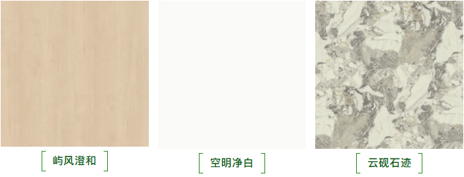 不同于市場上復(fù)雜冗余的風(fēng)格設(shè)計,淺嶼系列深諳年輕群體“怕翻車、求百搭”的家裝痛點,預(yù)設(shè)黃金花色組合:「嶼風(fēng)澄和」的淺木色溫潤治愈,「空明凈白」的純凈色提亮空間,「云硯石跡」的淺紋理石紋增添質(zhì)感,三者以“低飽和淺調(diào)+無冗余紋理”為核心,輕松搭配出高級感,完美避開“風(fēng)格堆砌”的裝修雷區(qū)。