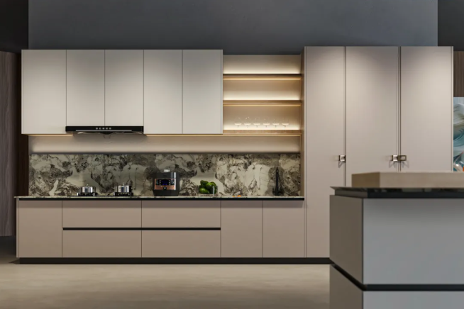 低飽和淺調(diào)弱化油煙視覺感,讓廚房始終保持通透清爽。極簡一體柜體精準(zhǔn)利用轉(zhuǎn)角、吊柜等每一寸空間,預(yù)設(shè)嵌入式家電位、分層抽屜、拉籃式收納等實用布局,輕松實現(xiàn)“顏值在線+操作省心”,讓每日下廚都成為治愈的日常。