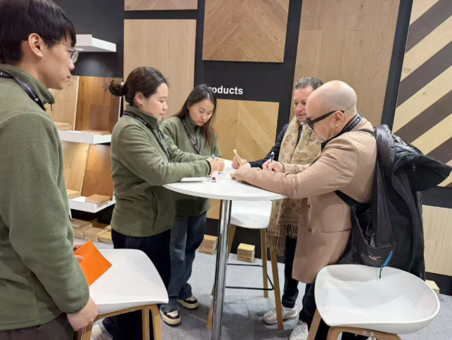 展會期間,兔寶寶展區(qū)人氣爆棚、盛況空前。來自全球的開發(fā)商、建筑師、設(shè)計(jì)師及專業(yè)采購商絡(luò)繹不絕,紛紛被這款集香氛體驗(yàn)與抑菌功能于一體的地板吸引。眾多國際客商表示,兔寶寶香氛抑菌地板既實(shí)現(xiàn)了實(shí)用功能與情感價(jià)值的有機(jī)統(tǒng)一,更以國際領(lǐng)先的抗菌技術(shù)和高品質(zhì)環(huán)保標(biāo)準(zhǔn),高度契合歐洲乃至全球市場對可持續(xù)健康生活的追求,具備顯著的市場競爭力與應(yīng)用潛力?,F(xiàn)場多項(xiàng)合作意向的達(dá)成,為兔寶寶海外市場的進(jìn)一步開拓奠定了扎實(shí)基礎(chǔ)。