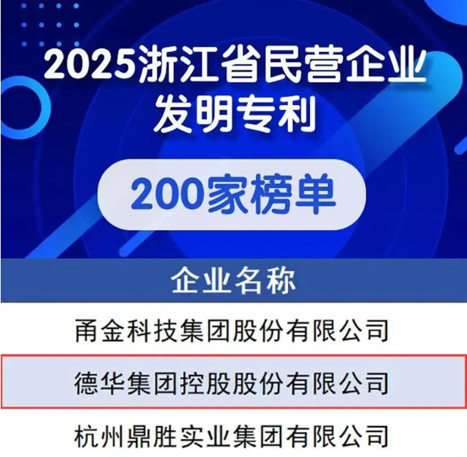 資訊中心 德華集團入選“2025浙江省民營企業(yè)發(fā)明專利200家”