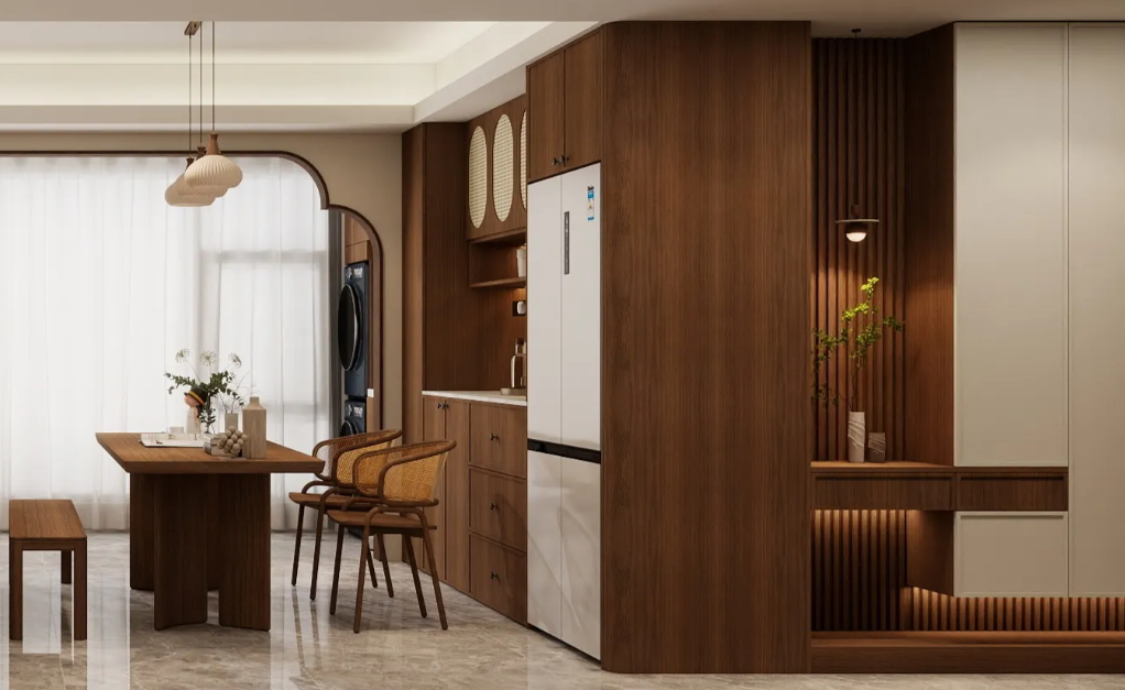 纖維板(包括密度板與刨花板):利用木質(zhì)纖維或刨花壓制而成。采用如MDI生態(tài)膠(異氰酸酯膠)等零醛膠粘劑后,可以生產(chǎn)出環(huán)保性能卓越的板材,平整度高,適合做造型門板。
