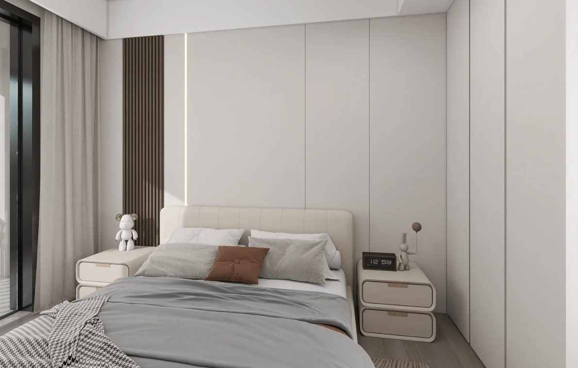 PET飾面采用食品級聚酯薄膜,通過先進的壓貼技術(shù)與基材結(jié)合。其最大特點是色彩純凈度高、飽和度好,表面質(zhì)感通常分為高光與啞光。高光PET亮麗如鏡,極具現(xiàn)代感;啞光PET溫和雅致,觸感細膩。得益于其出色的化學穩(wěn)定性,PET飾面不易黃變、褪色,且可提供豐富的純色及仿石材、仿金屬等時尚紋理選擇。目前,兔寶寶等一線板材品牌已能提供極其豐富的PET飾面選項,無論是莫蘭迪色系還是高光炫彩系列,都能滿足現(xiàn)代極簡、輕奢等主流風格的需求。它廣泛應(yīng)用于櫥柜門板、衣柜門、電視柜等追求平整、亮麗效果的立面空間。