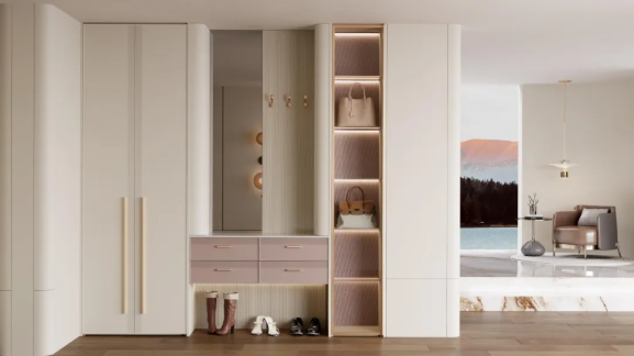 入戶玄關(guān),作為家人外出歸來的“第一站”,也是病菌交叉感染的高發(fā)區(qū)域。用兔寶寶純芯板打造的玄關(guān)柜,可有效阻隔包包、外套上攜帶的外界細菌,為家人筑起入門的首道健康屏障。