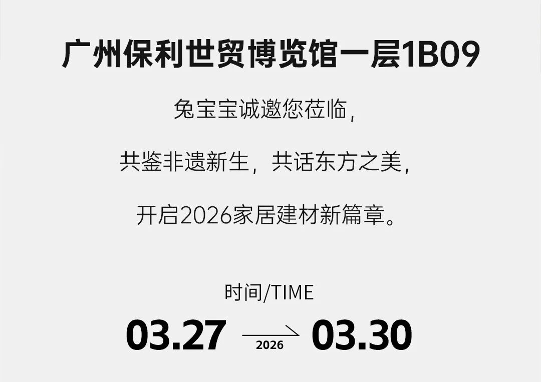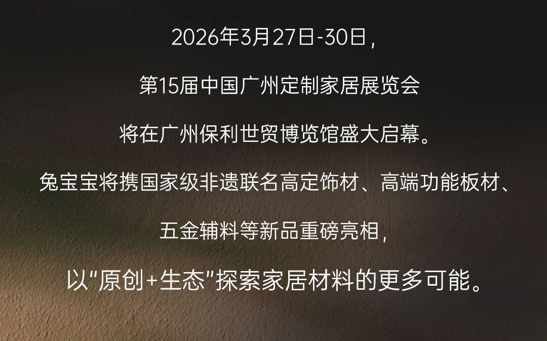 重磅預(yù)告!兔寶寶亮相廣州定制家居展,以原創(chuàng)生態(tài)定義家居飾材新高度