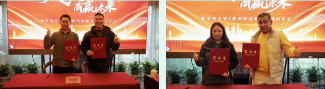 最后,本次招商會(huì)迎來高潮環(huán)節(jié),戰(zhàn)略合作簽約與授權(quán)證書頒發(fā)正式開啟。在現(xiàn)場嘉賓的共同見證下,13組五金客戶及11組膠粘劑客戶依次與兔寶寶完成簽約,一張張合作協(xié)議、一本本授權(quán)證書,標(biāo)志著雙方正式開啟戰(zhàn)略合作。