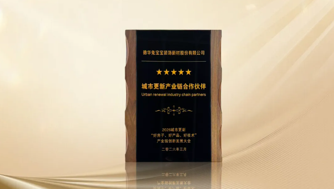 在大會(huì)的榮譽(yù)頒授環(huán)節(jié),兔寶寶憑借在城市更新領(lǐng)域的技術(shù)創(chuàng)新、產(chǎn)品品質(zhì)和服務(wù)體系,獲評(píng)“城市更新產(chǎn)業(yè)鏈合作伙伴”。這一殊榮不僅是對(duì)兔寶寶三十余年深耕健康飾材、綠色家居領(lǐng)域的高度認(rèn)可,更是對(duì)公司積極投身城市更新國(guó)家戰(zhàn)略、以企業(yè)擔(dān)當(dāng)助力好房子建設(shè)的肯定。同時(shí),也標(biāo)志著兔寶寶將更深度地融入城市更新全產(chǎn)業(yè)鏈生態(tài)圈。