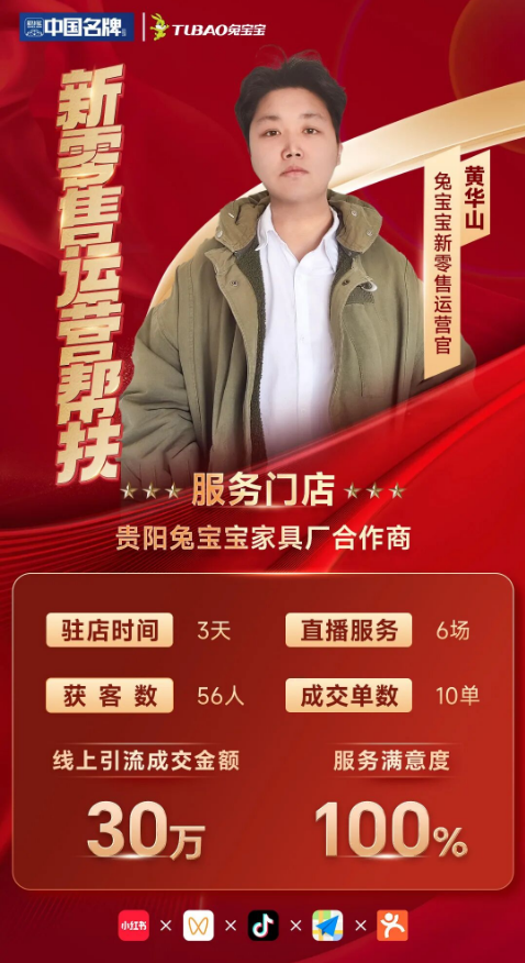 對此,兔寶寶新零售中心精準(zhǔn)施策,由西南區(qū)域資深運(yùn)營專家黃華山老師帶隊(duì),以貴陽兔寶寶家具廠合作商為試點(diǎn),開展駐店實(shí)操幫扶,成功跑通「短視頻種草 + 本地直播承接 + 精準(zhǔn)投流放大」的一體化協(xié)同獲客模型,驗(yàn)證了直播與短視頻雙輪驅(qū)動路徑的可落地性與規(guī)模化潛力。