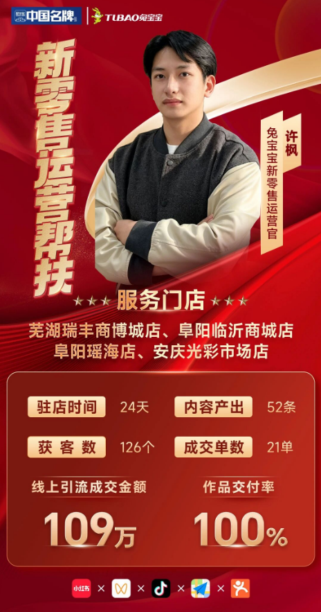 各區(qū)域新零售專員專注于為門店提供全方位的運營幫扶。一季度以來,安徽區(qū)域精準發(fā)力、批量幫扶,深度服務兔寶寶板材定制蕪湖瑞豐商博城店、阜陽臨沂商城店、阜陽瑤海店、安慶光彩市場店4家門店,通過全流程一站式幫扶,成功推動門店擺脫線上運營困境,從賬號斷更狀態(tài)升級為常態(tài)化運營,實現(xiàn)線上獲客與業(yè)績的雙重突破,彰顯了新零售幫扶模式的規(guī)?;x能價值。