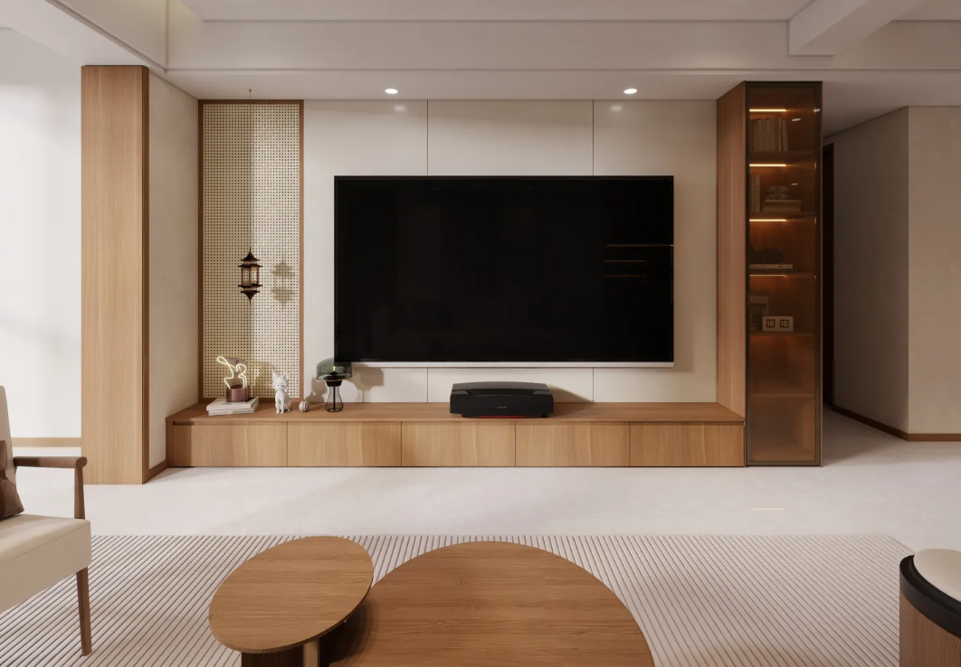 木材+玻璃:木質(zhì)柜體搭配玻璃門板,可以展示藏品,同時避免全封閉柜門的沉悶感。