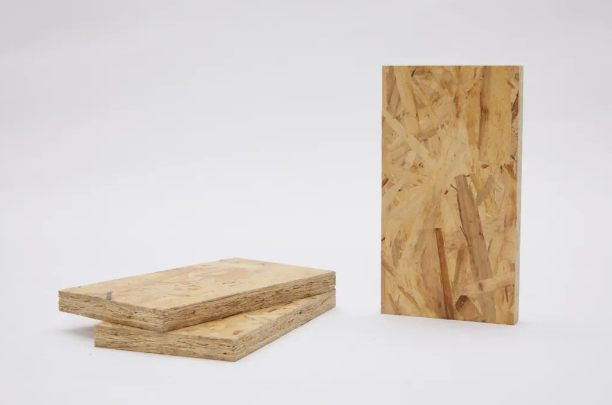 OSB是由窄長薄平刨花施加膠粘劑后,在同一層內(nèi)按同一方向排列鋪裝成型熱壓而成的板材。
