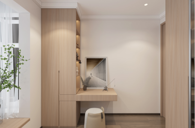 新中式風(fēng)格的色彩搭配以“和諧”為主,傳統(tǒng)的色彩有墨黑、石灰、米白等。除選擇這些色彩外,采用更為柔和的“甘石 胡桃木半山紋”,亦可營造出一種素雅而禪靜的氛圍