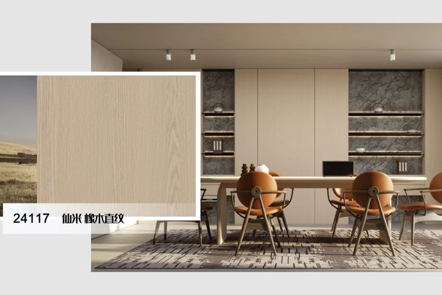 在現(xiàn)代家居空間設(shè)計(jì)中,不同色彩和紋理的運(yùn)用能夠反映出居住者對(duì)于生活的態(tài)度。在兔寶寶全新發(fā)布的板紙一體化-“萬(wàn)物·廿四”專(zhuān)屬花色體系下,無(wú)論是追求自然的“森木”系列花色,還是突出質(zhì)感的“帛錦”系列花色,都能為整體空間帶來(lái)一抹舒適感。