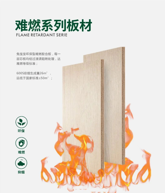 兔寶寶難燃板是經(jīng)過阻燃處理,燃燒性能達(dá)到難燃等級(jí)的板材,可以在火災(zāi)發(fā)生時(shí)有效阻燃、減緩火勢(shì)蔓延,為消防和逃生達(dá)到爭(zhēng)取時(shí)間的作用。