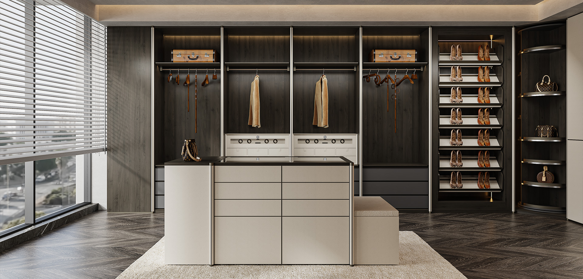 +旋轉(zhuǎn)收納柜及高柜的設(shè)計組合搭配而成
