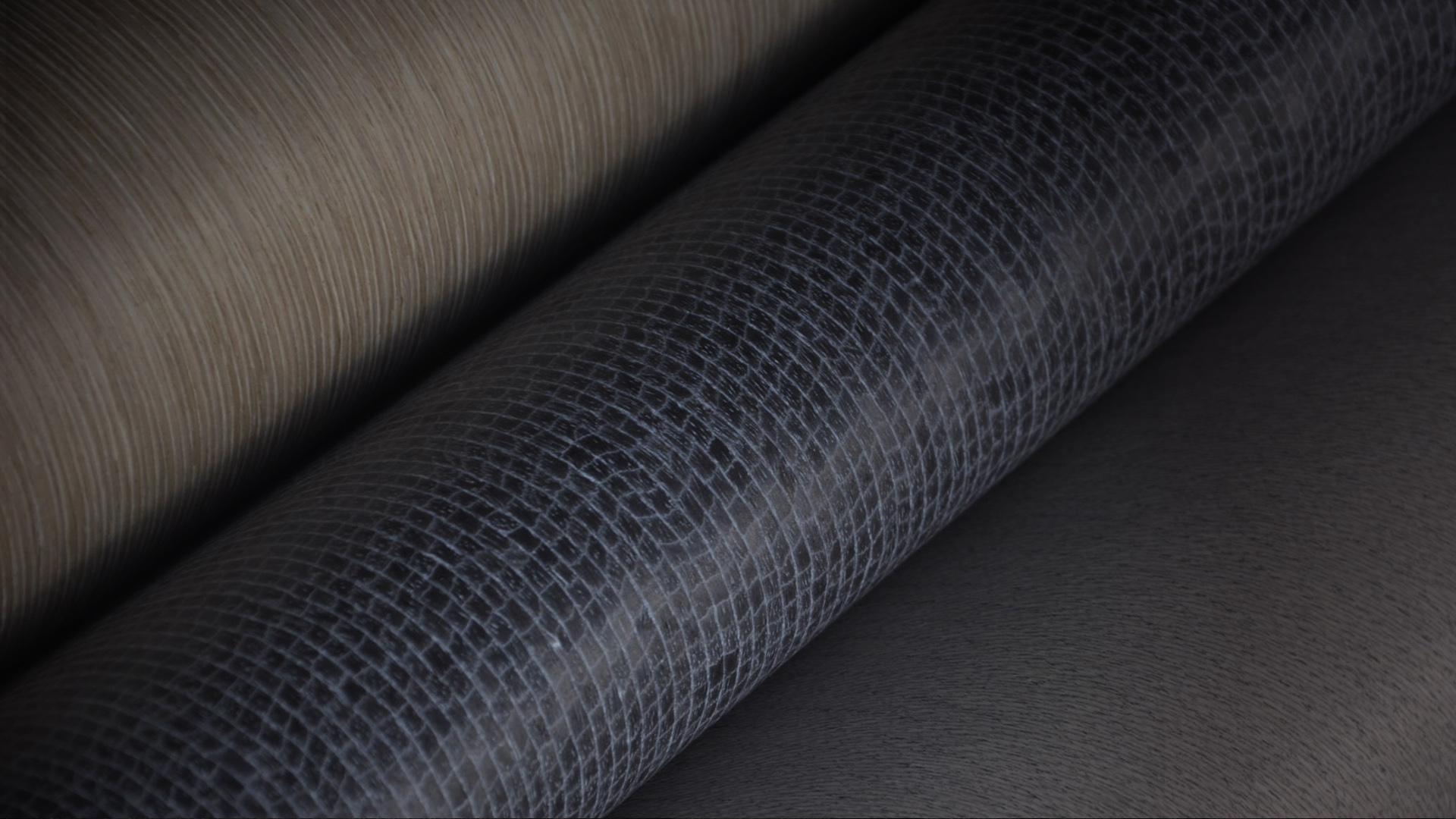 根據(jù)天然珍貴木材的紋理、色澤,通過電腦設(shè)計識別出天然木皮的紋理色澤,使用速生材進(jìn)行染色,開發(fā)相應(yīng)的模具,再通過電腦三維重組形成天然木材原有的紋理,最終形成仿生木皮。