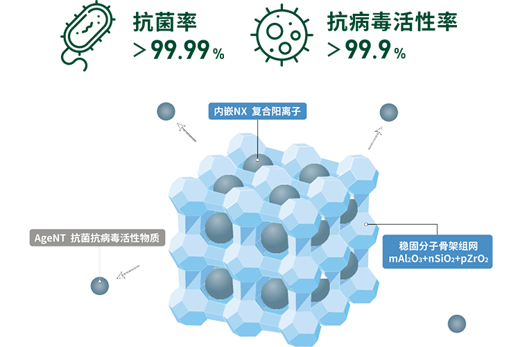 采用特制硅鋁酸鹽分子框架結構,內(nèi)載銀鋅雙效復合活性因子,通過表面植入技術搭載于板材面層,可有效吸附并殺滅細菌和病毒。經(jīng)權威機構檢測,產(chǎn)品抗菌率≥99.99%,病毒滅活率≥99.9%,全面保障您和家人的健康安全。