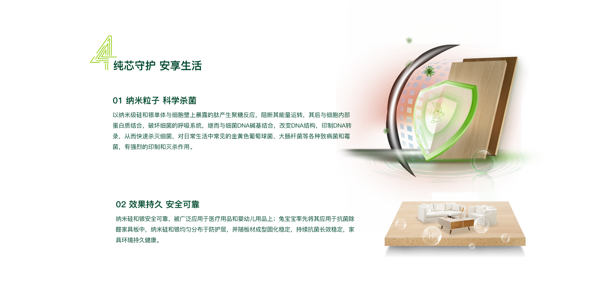 納米科技力 通過納米粒子實(shí)現(xiàn)抗菌防霉效果,抗菌率可達(dá)99.9%