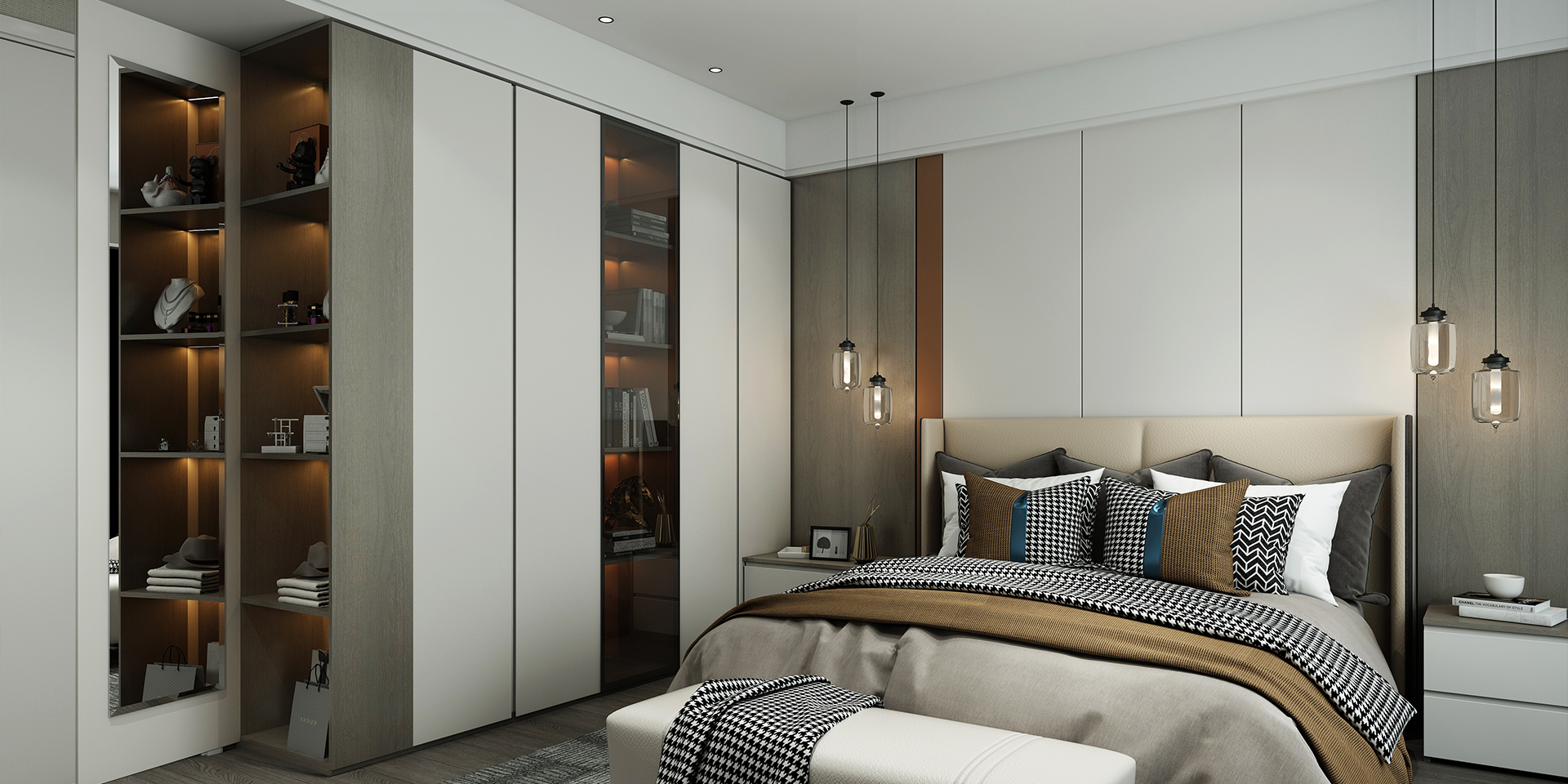 大面積的掩門(mén)衣柜設(shè)計(jì)滿足各類衣物,