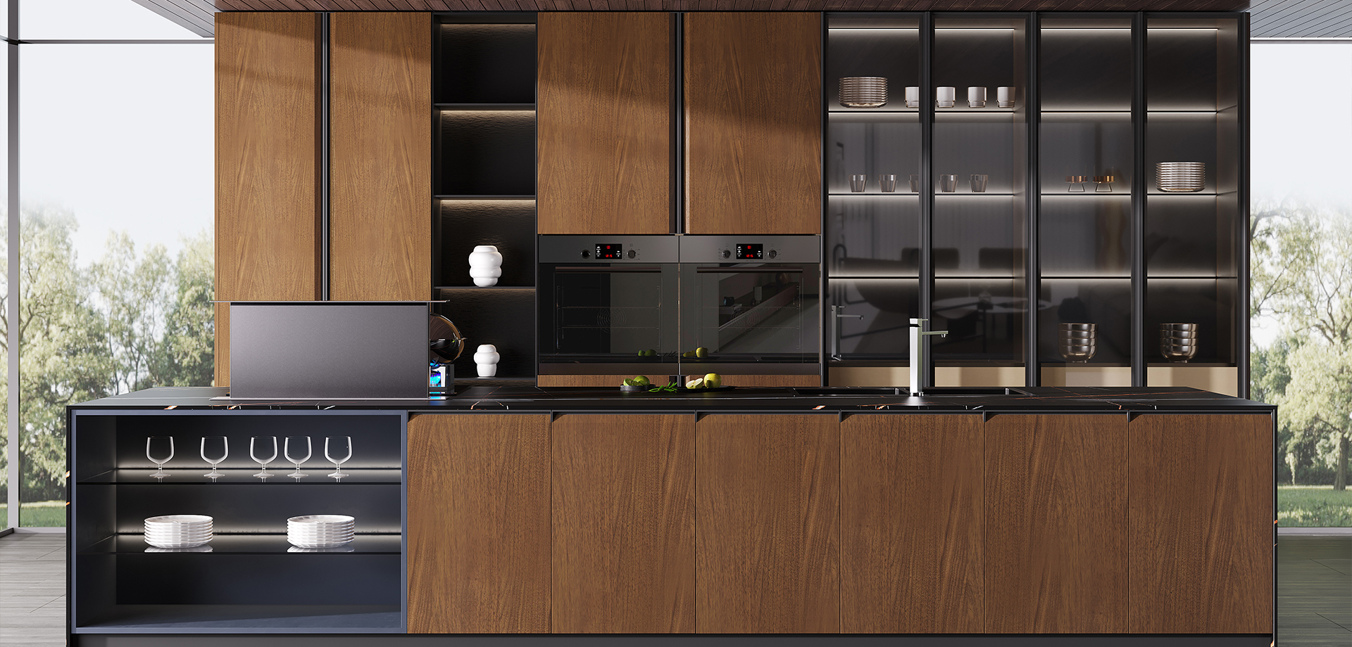 島臺(tái)型櫥柜具有更多的收納空間和操作臺(tái)面。