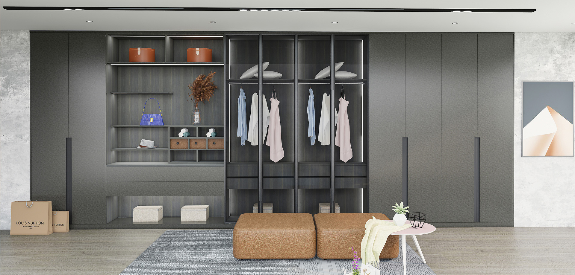 黑色和橙色皮紋突顯空間的層次,