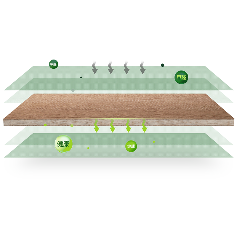 以高品質(zhì)木材為原料,結(jié)合噴蒸預(yù)處理技術(shù),經(jīng)過蒸煮、刨片、篩選、定向鋪裝、連續(xù)平壓等工序精制而成。使用高活性MDI無醛膠,環(huán)保等級達(dá)ENF級。