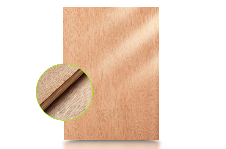 芯材由相鄰層單板的紋理方向垂直組胚膠合而成。奇數(shù)層單板對稱配組,對稱層單板材性相同或相近,且厚度均勻一致,結(jié)構(gòu)穩(wěn)定。