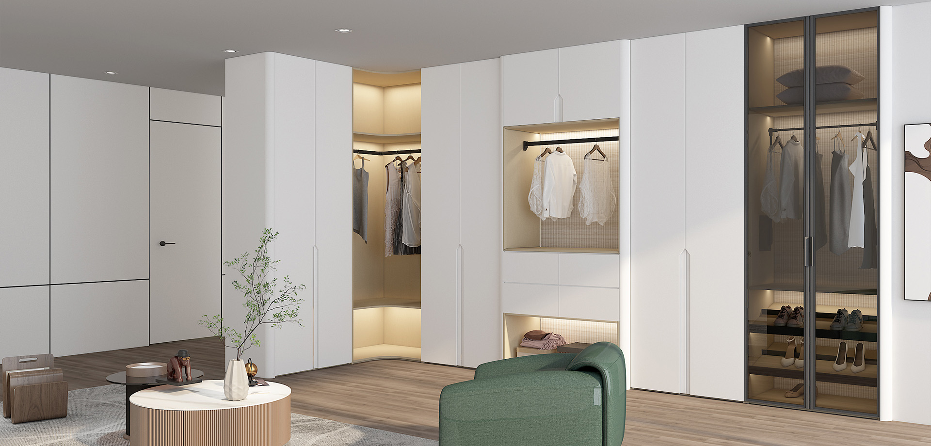 2.7米高度的衣柜增加智能升降衣桿,解決了衣柜過高問題。