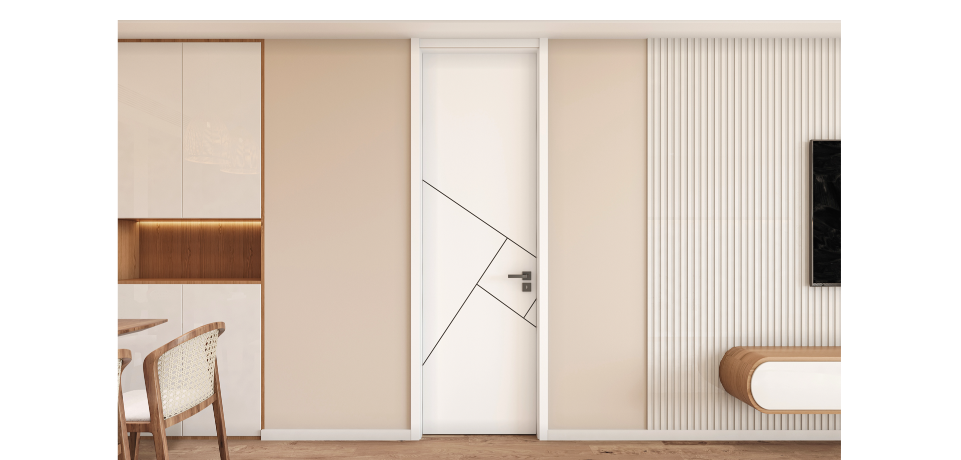 兔寶寶木門門芯含水率控制在8%—12%,是最適合家居產(chǎn)品的含水率區(qū)間,40道制造工藝,每一處都細(xì)細(xì)打磨,靜音效果好,不易開裂、不易變形。